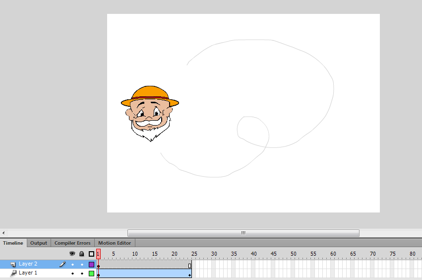 - Hapus layer 2, kemudian kemudian klik layer 1 frame 1. Pada bagian panel properties atur sehingga terlihat sama seperti berikut ini. Jalankan hasilnya.